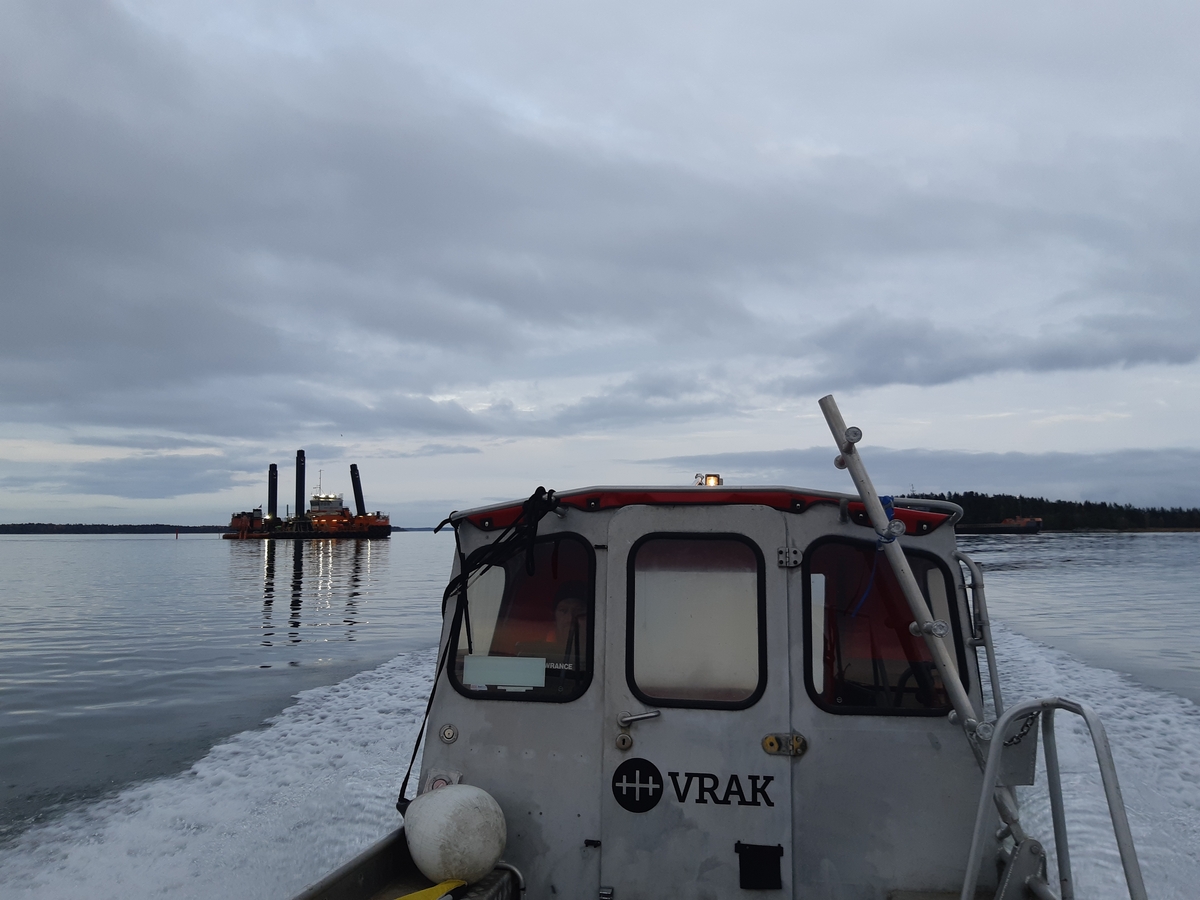 Dykbåten utanför Hargshamn med mudderverk i bakgrunden