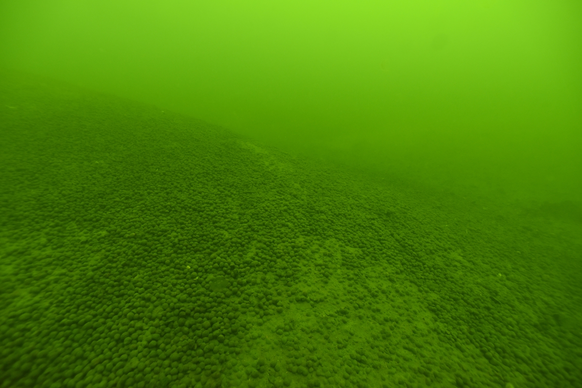 Pelletshög på bottnen av Oxelösunds hamn.