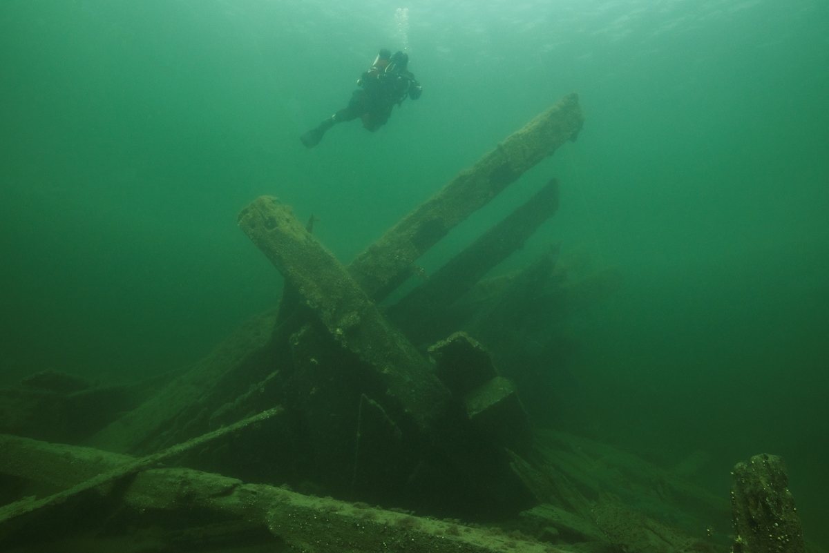 Akterpartiet är konstruerat med väldigt grova timmer och lutar kraftigt åt babord.