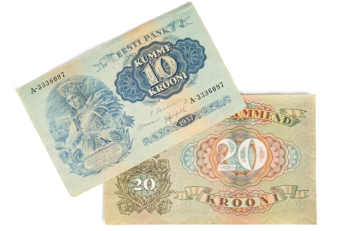 Estniska sedlar, 30-tal. Togs med på flykt från Estland till Sverige år 1944.