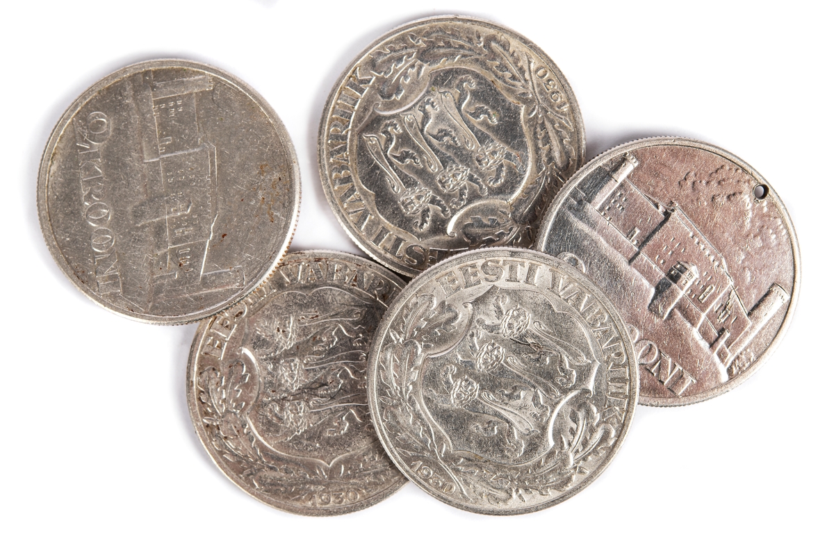 Estniska mynt. Togs med på flykt från Nargö, Estland till Sverige år 1943.