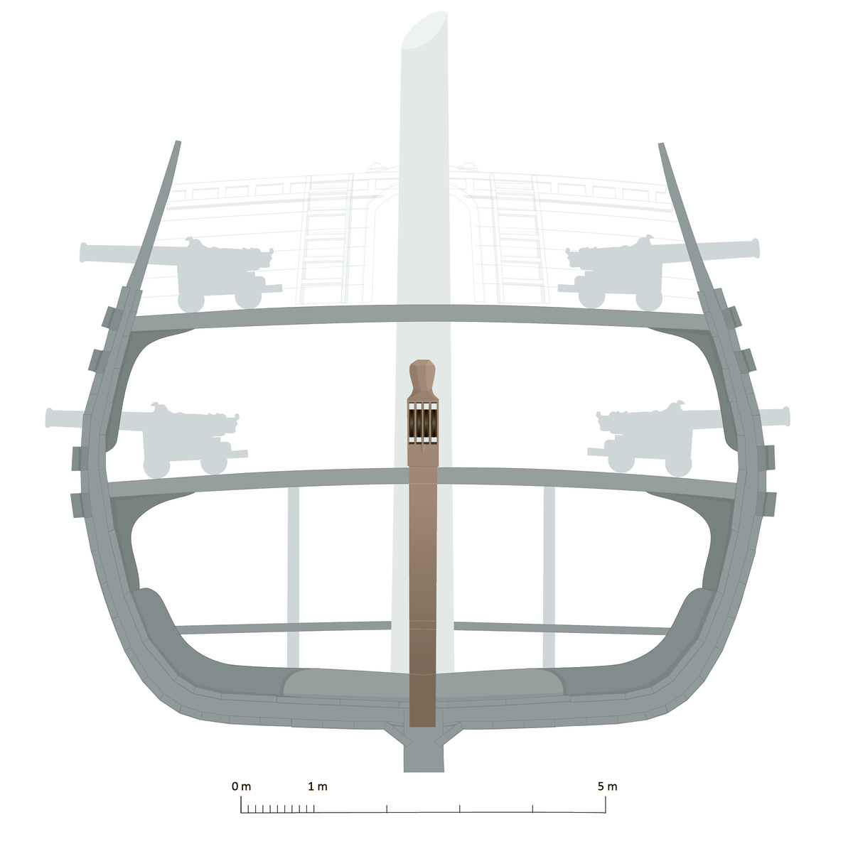 Skissen av Maria bygger på de arkeologiska måtten på två balkar, spanten, bordläggningen och innergarneringen. Formen och konstruktionen är i princip identisk med Apollo. Layout: Alexander Rauscher.