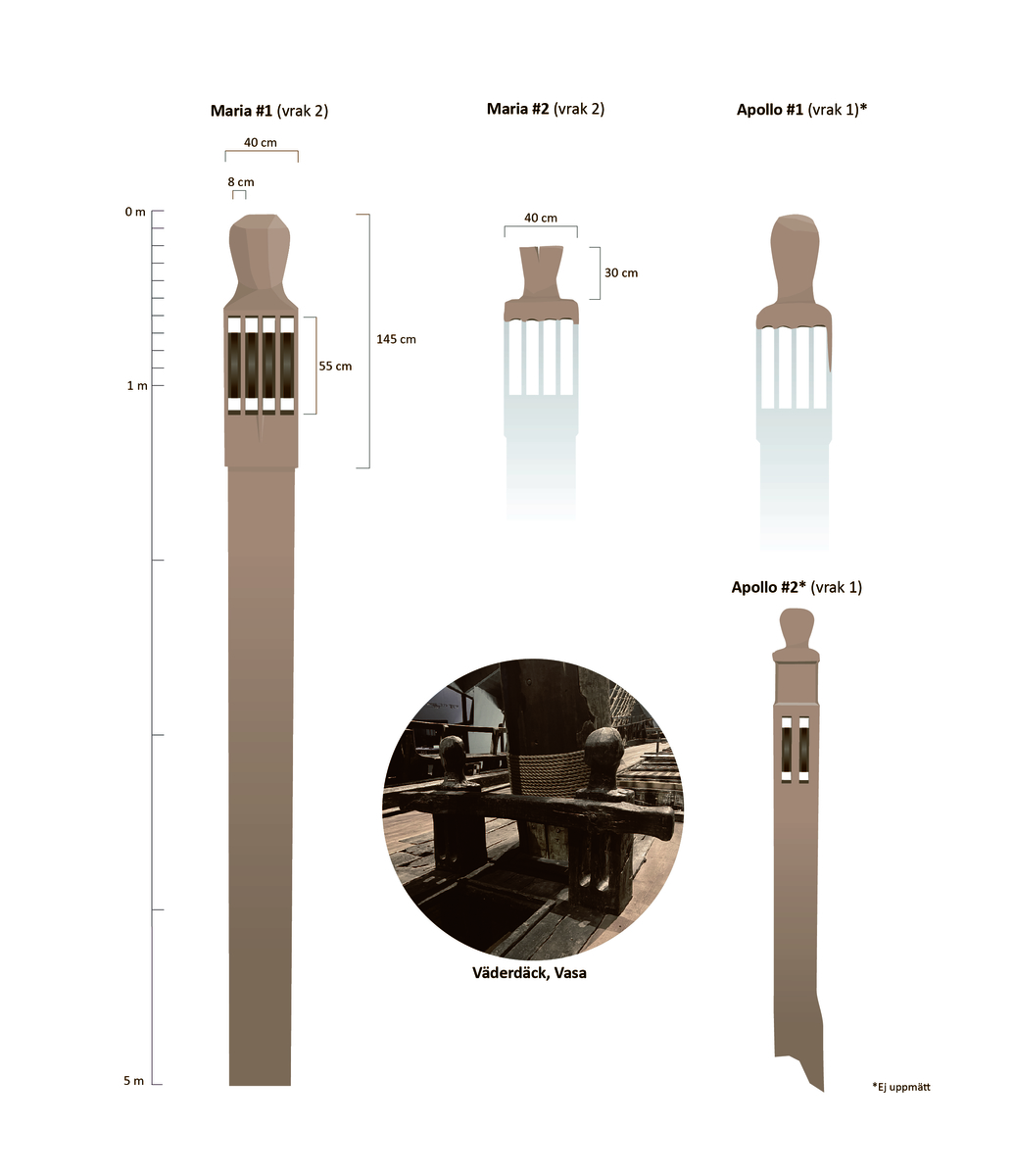 Fyra olika typer av knektar påträffades i vraken, Apollo och Maria. Layout: Alexander Rauscher.