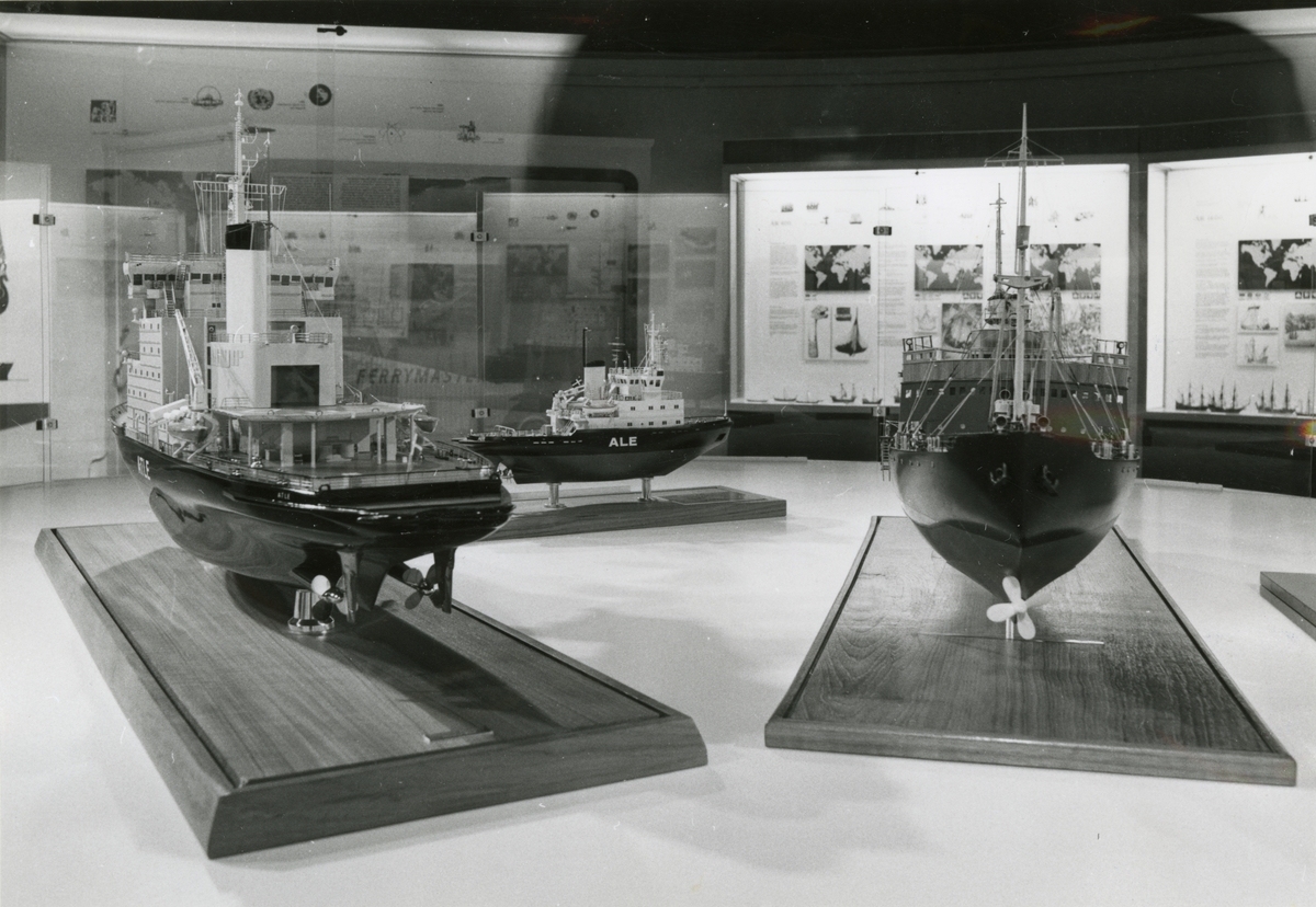 Utställningen "Isbrytare". Fartygsmodeller av isbrytarna ALE, YMER och ATLE utställda i kupolrummet.