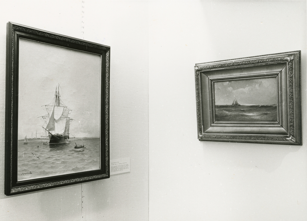 Utställningen "Ludvig Richarde, en bortglömd marinmålare". Två av konstnärens alster.