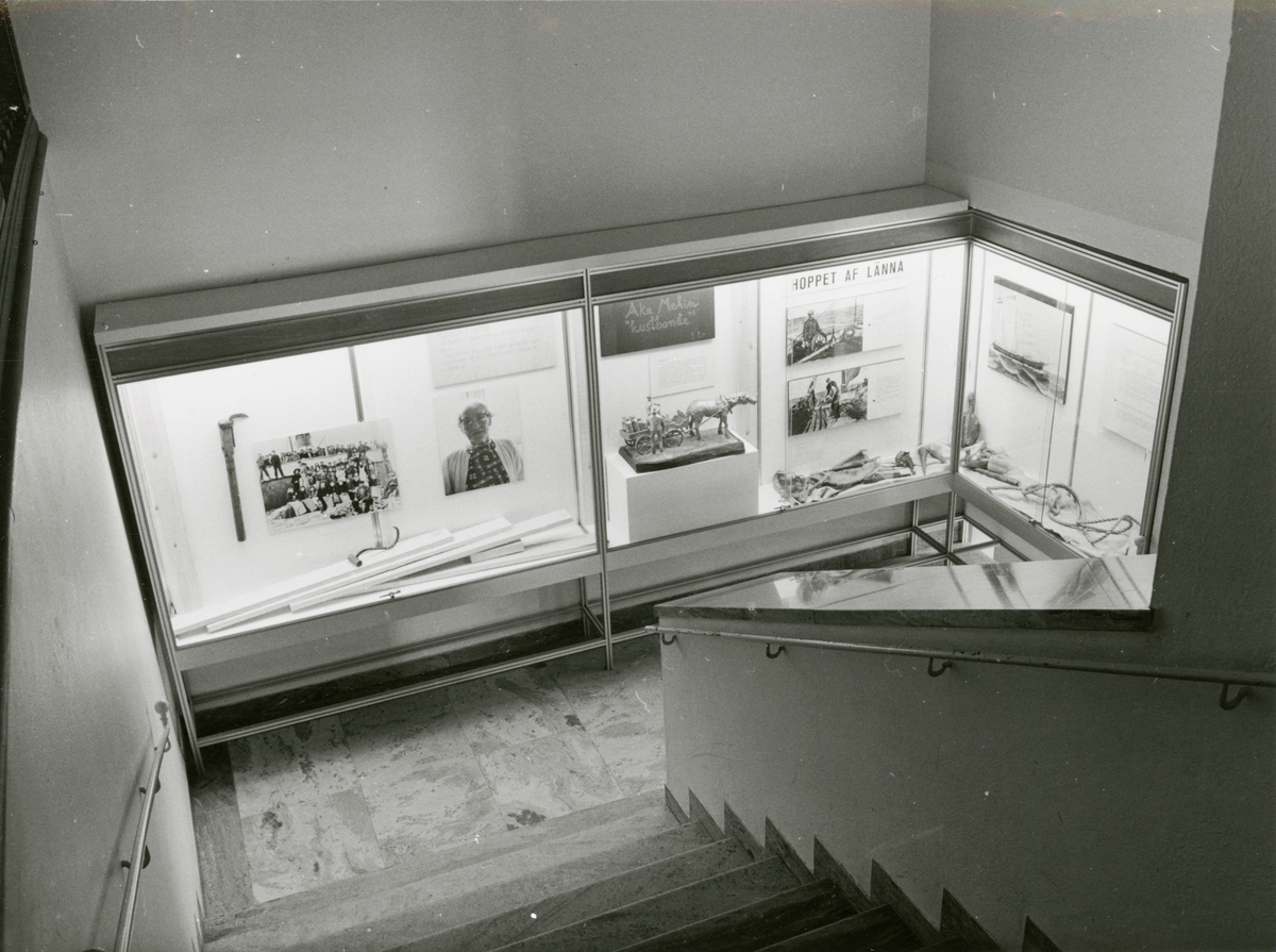 Utställningen "Småbrukarliv i kustbyggd Åke Melin". Pesentation av utställningen i trappmonter.