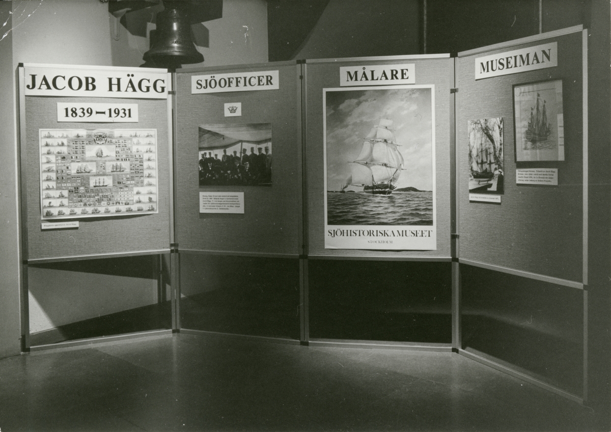 Utställningen "Jacob Hägg sjöofficer, målare, museiman 18391931". Inledningsskärmen.