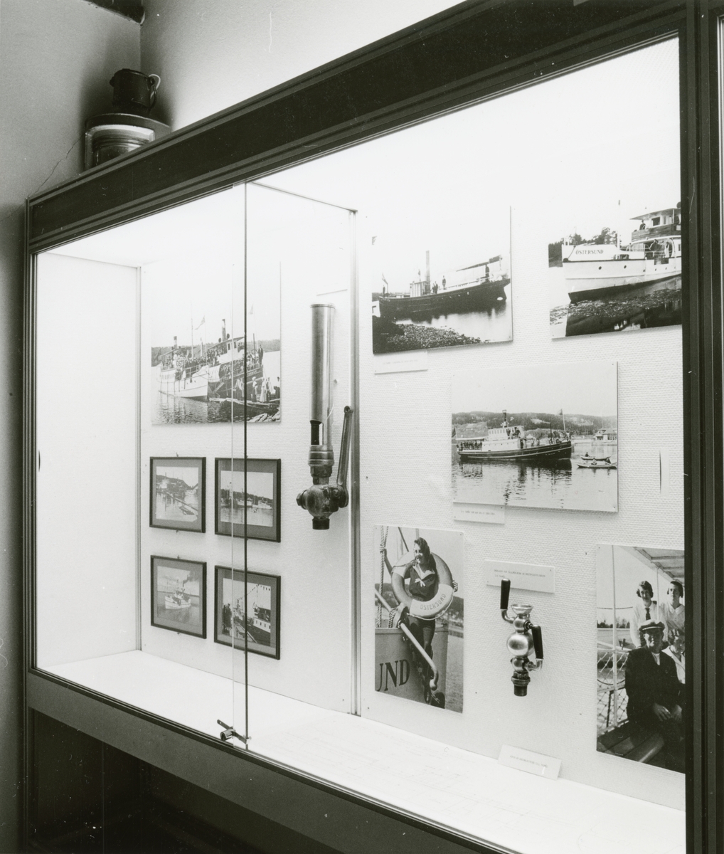 Utställningen "Storsjöflottan". Del av trappmonter med fotografier och föremål kopplade till Storsjöflottan.