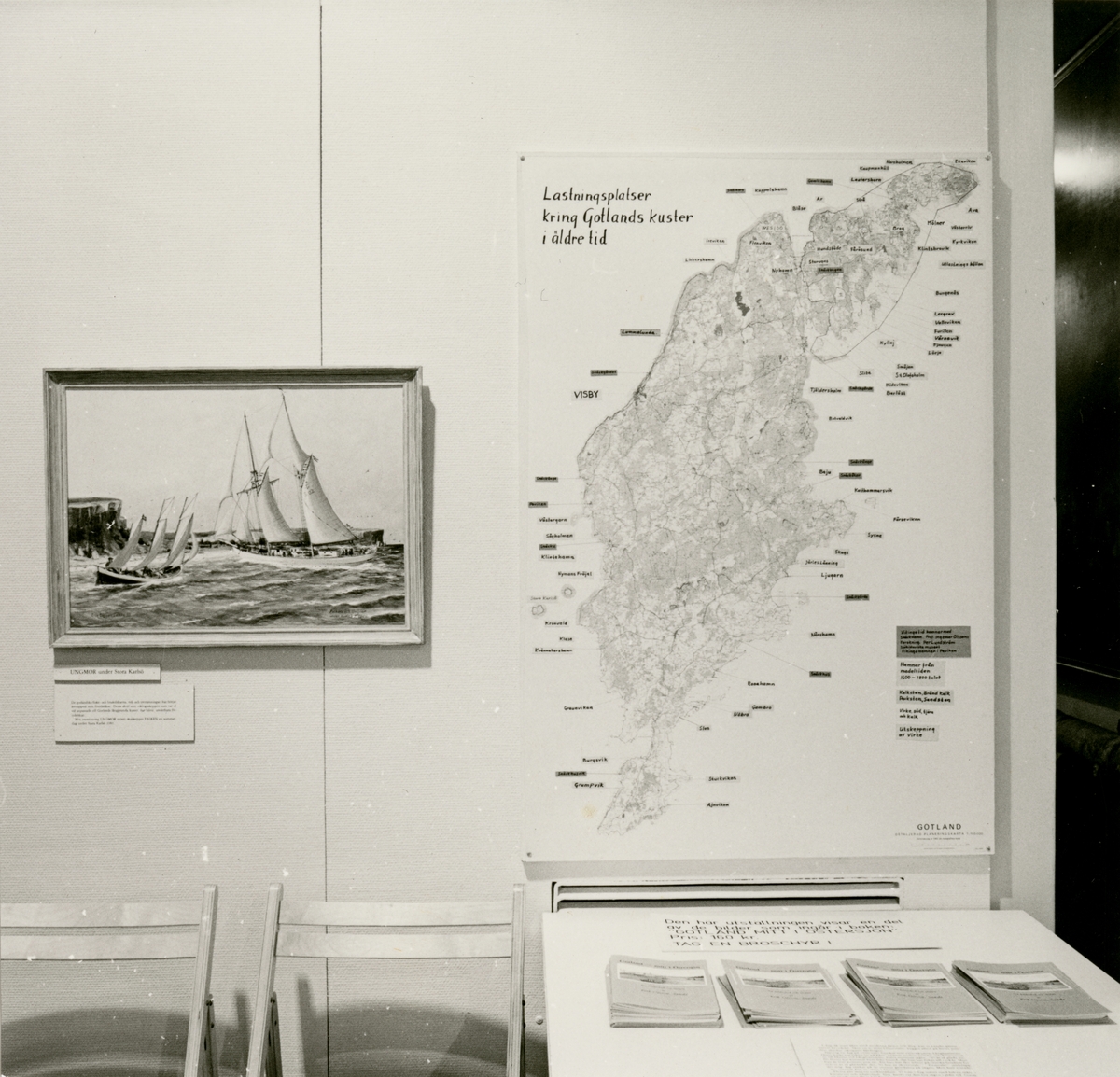 Utställningen "Gotland mitt i Östersjön". Målningar av konstnären Erik Olsson i Sanda. Del av utställningen "Lastplatser kring Gotlands kuster i äldre tid".