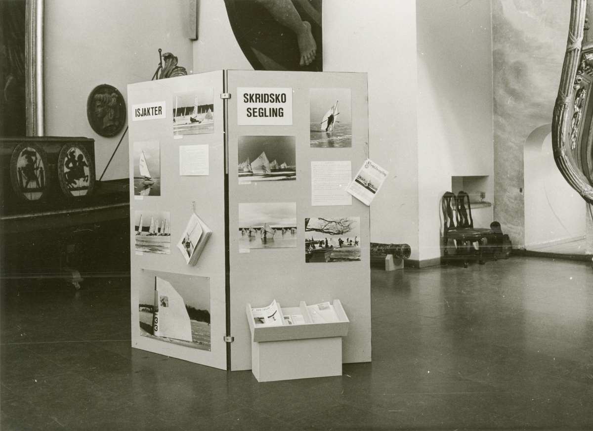 Titel: Skridskoutställningen i Minneshallen. Presentation av isjakt och skridskosegling.