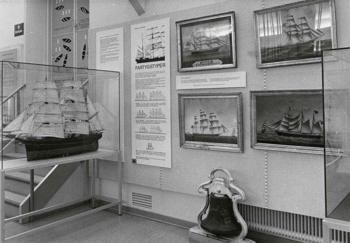 Basutställning i mastrummet i Sjöfartsavdelningen. Utställningsinteriör som handlar om olika fartygstyper.
