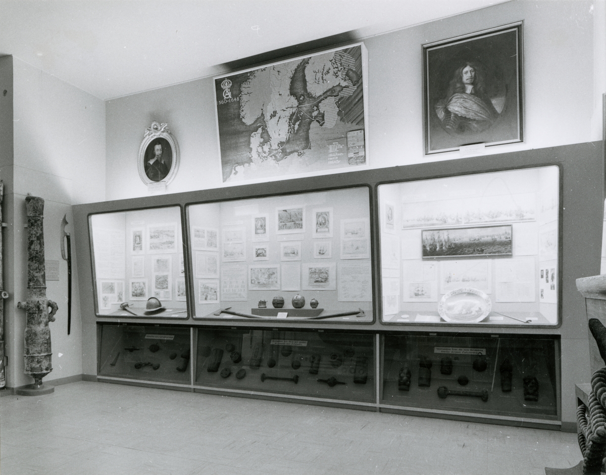Titel: Utställning i Örlogsavdelningen. Översiktsbild av Vasarummet.