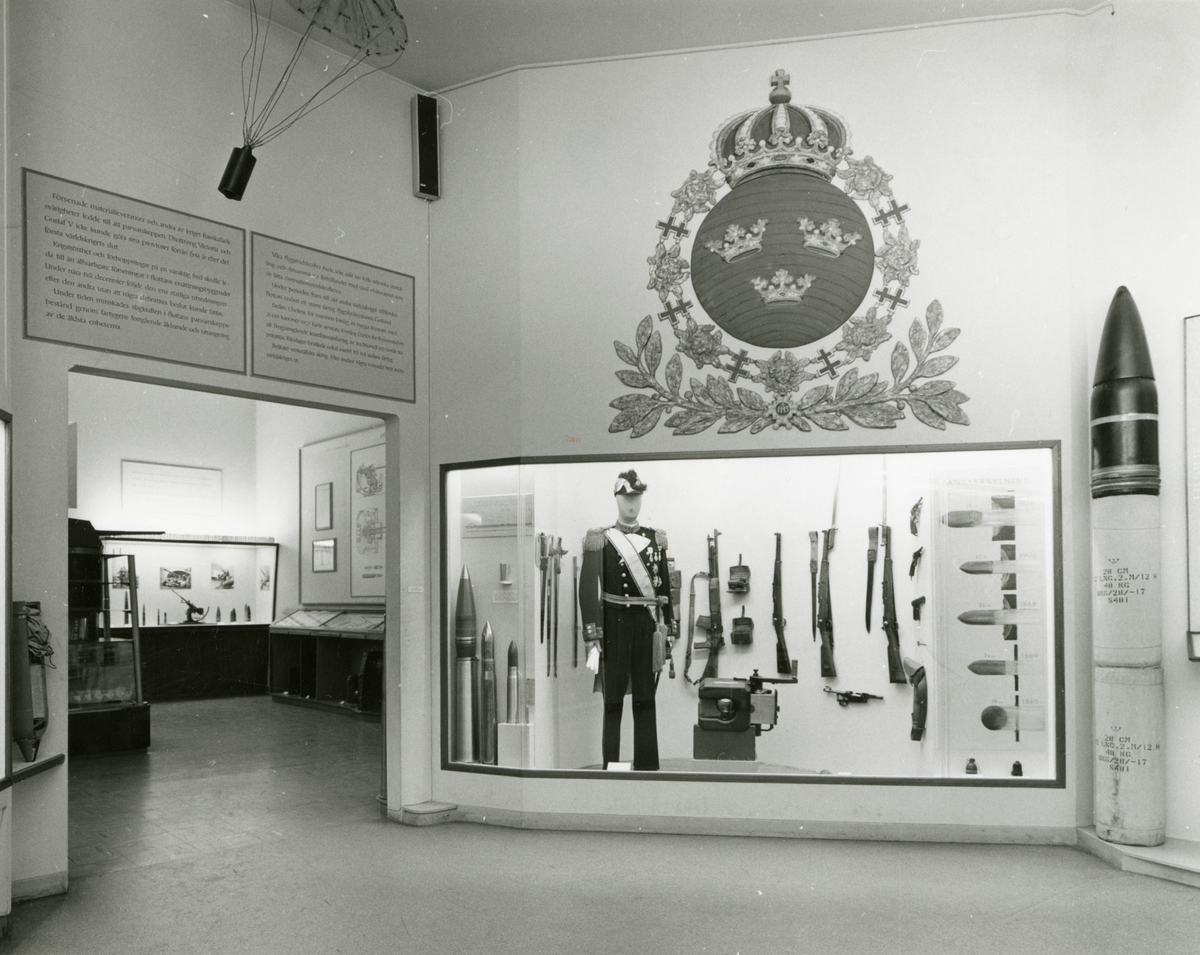 Utställning i Örlogsavdelningen. Monter med paraduniform och vapen i Sverigerummet.