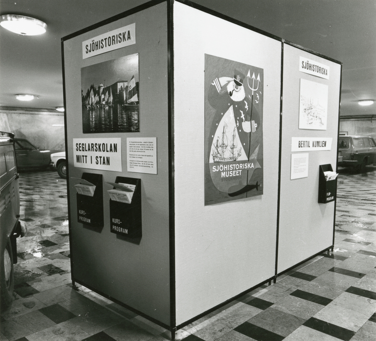 Utställningen "Segla 75" i Ostermans marmorhallar. Persentation av seglarskolan och den pågående utställningen på Sjöhistoriska museet