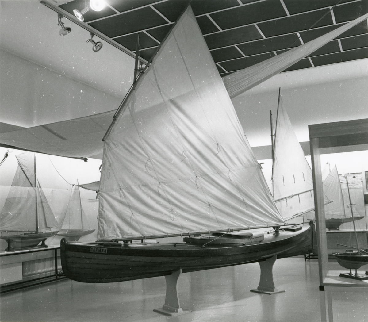 Utställningen "Fritidsbåtar på museum". Segelkanoten CARMEN samt fartygsmodeller.