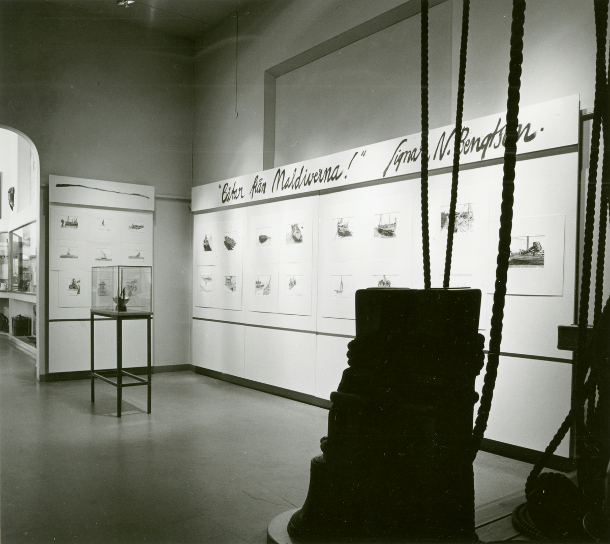 Utställningen Båtar från Maldiverna med teckningar av Signar Bengtsson.