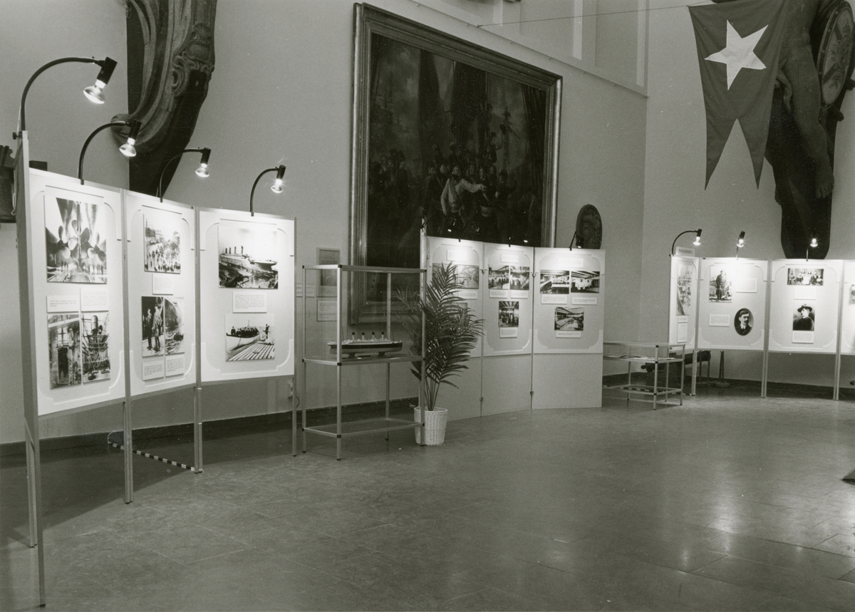 Utställningen "Titanic". Översiktsbild med fartygsmodell och utställningsskärmar om fartyget.