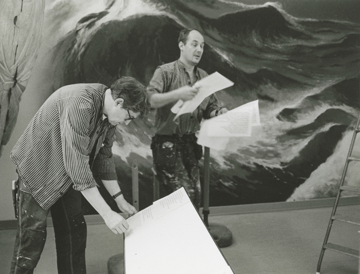 Titel: Utställningen "Oceanfarare" under uppbyggnad.