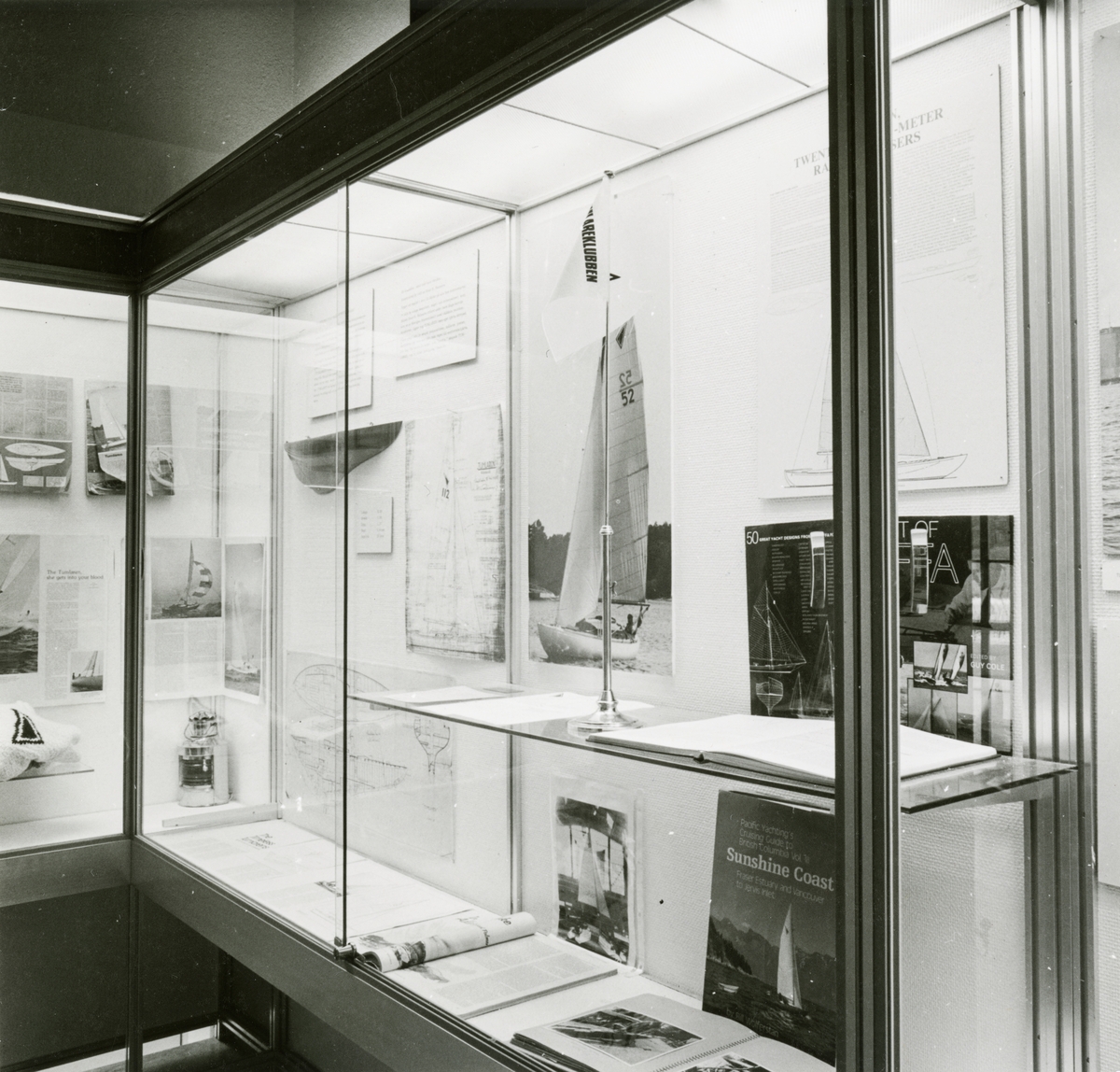 Utställningen "Tumlaren 50 år". Del av utställning i trappmonter med halvmodell, arkivalier m.m.