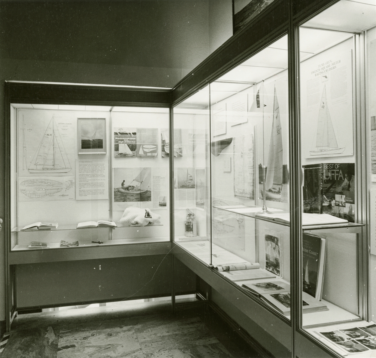 Utställningen "Tumlaren 50 år". Del av utställning i trappmonter med halvmodell, arkivalier m.m.
