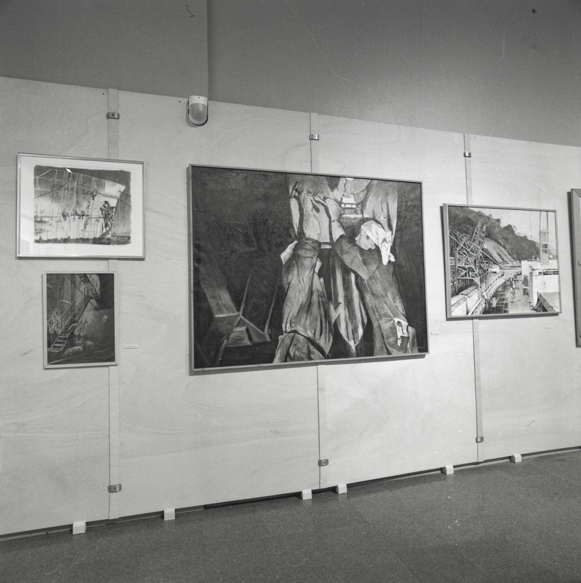 Utställningen "Sjömanskonst". Inledningen av utställningen med konst på väggarna
