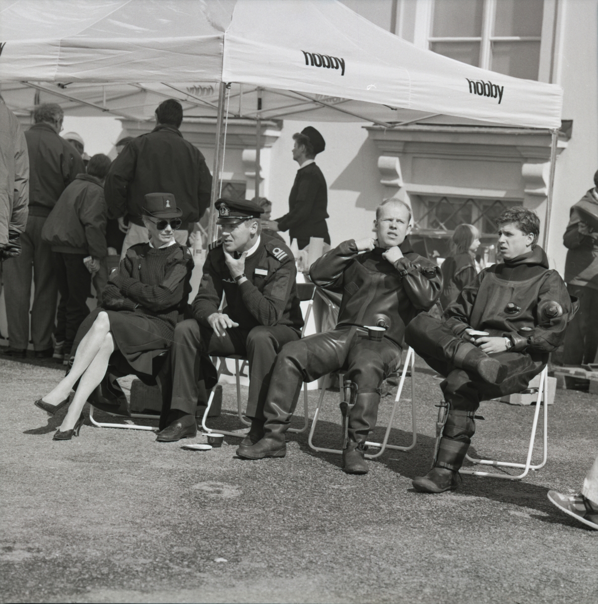 Aktivitet utanför Sjöhistoriska museet i samband med utställningen "Ubåtar, finns dom".