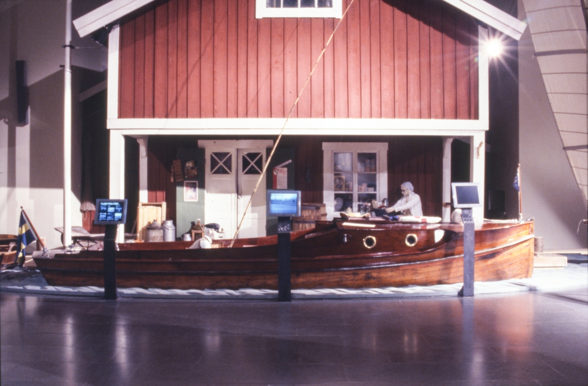 Utställningen "Båtliv". Fritidsbåt av Petterson-typ utställd i minneshallen.