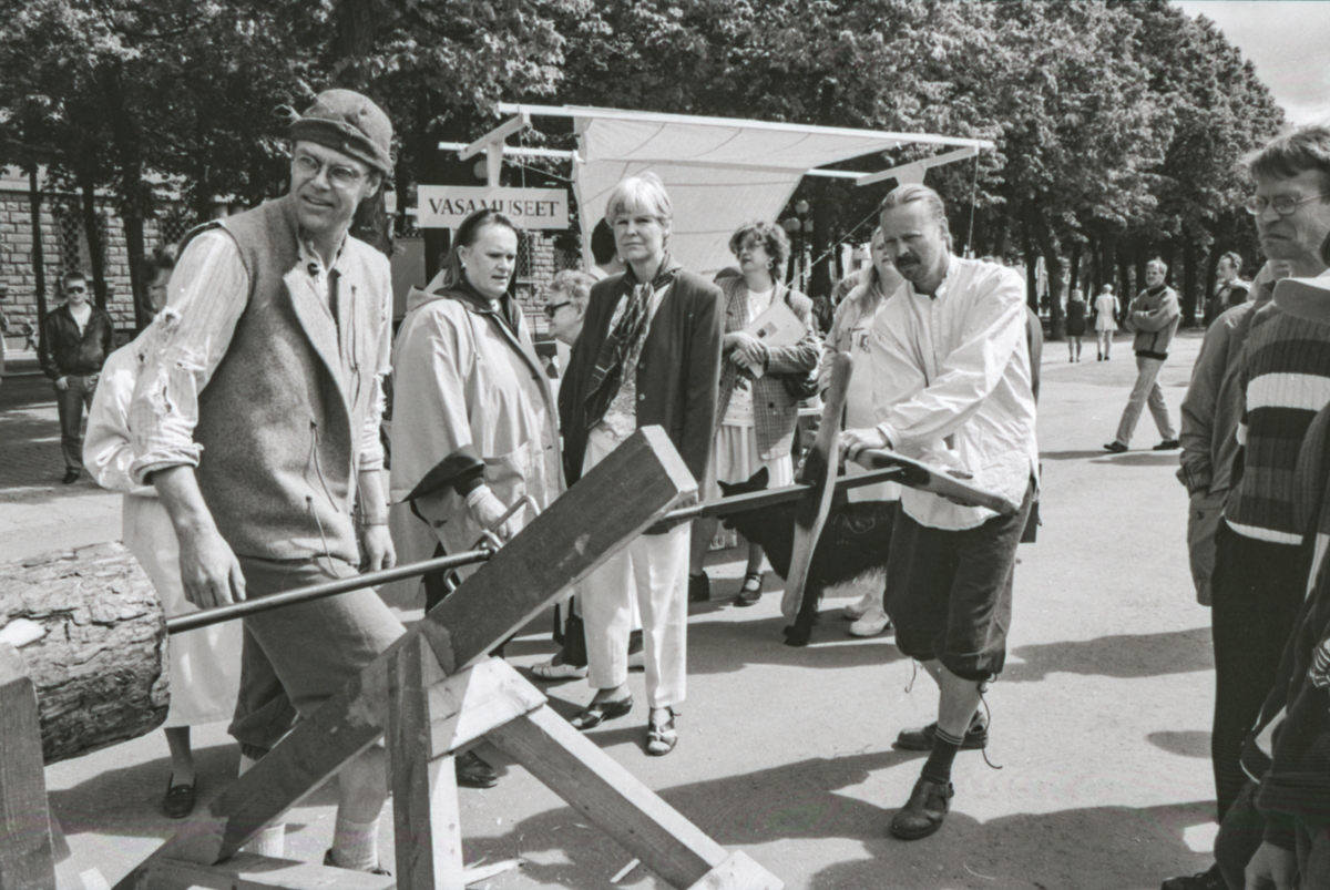 Utställningsevenemanget "Vår roliga historia". Visning om hur borrning i stock går till.