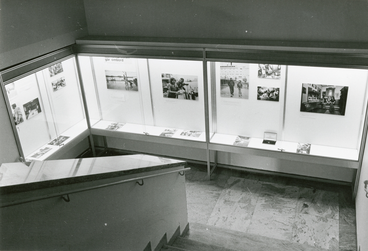 Utställningen "Sjömansprästen går ombord". Fotografier av Hans Erixon visas i trappmonter.