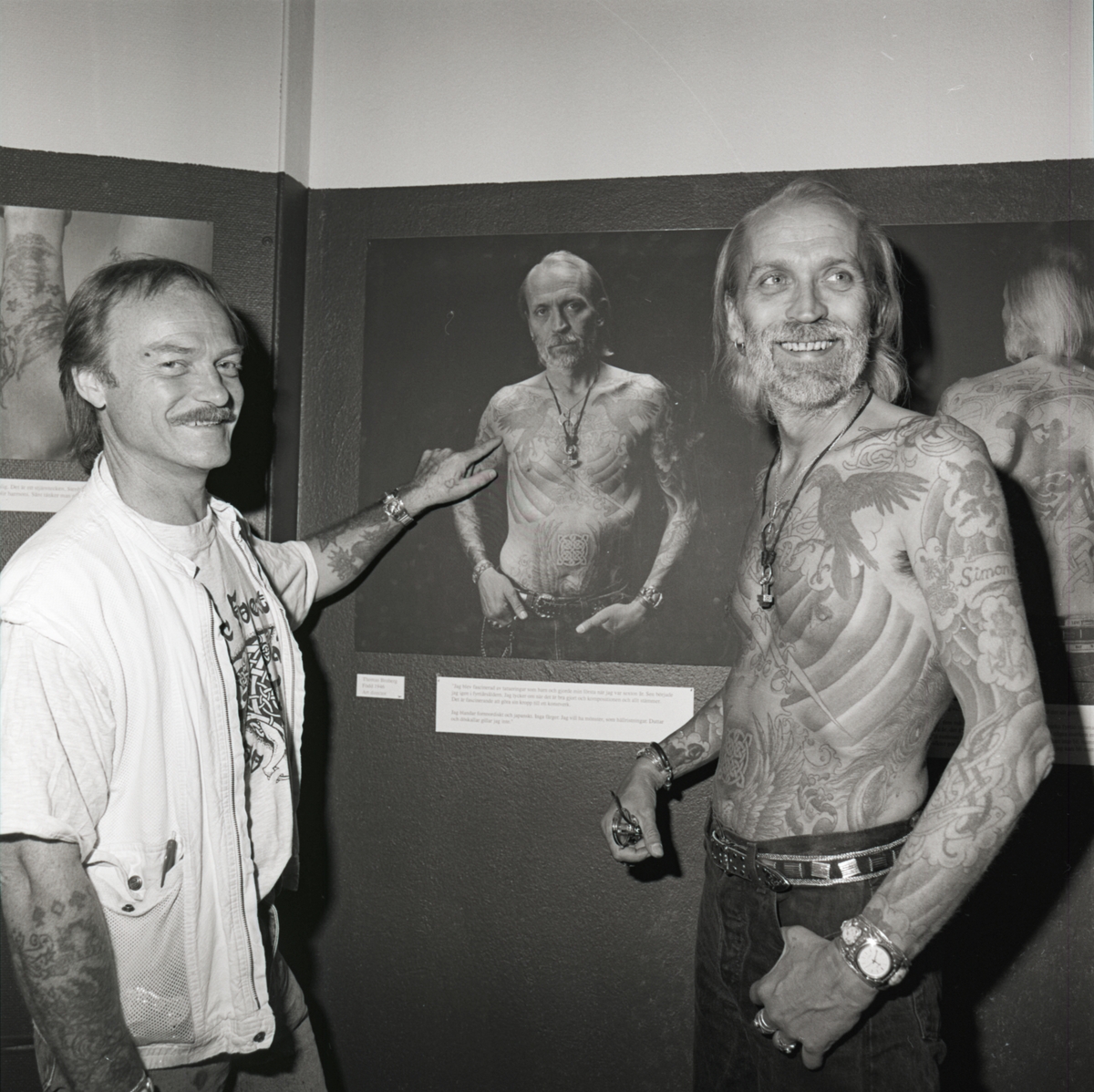 Utställningen "Tatuering". Tatueraringsartisten Ove "Doc Forest" Skog tillsammans med "Sveriges mest tatuerade man" Thomas Broberg vid pressvisningen.
