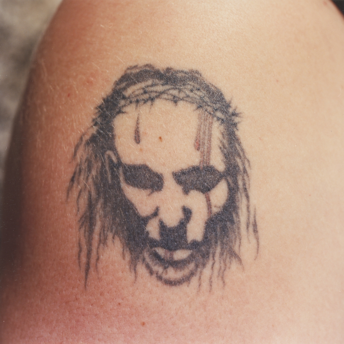 Utställningen "Tatuering". Förstudie till utställningen. En mans tatuering på hans högra axel.
