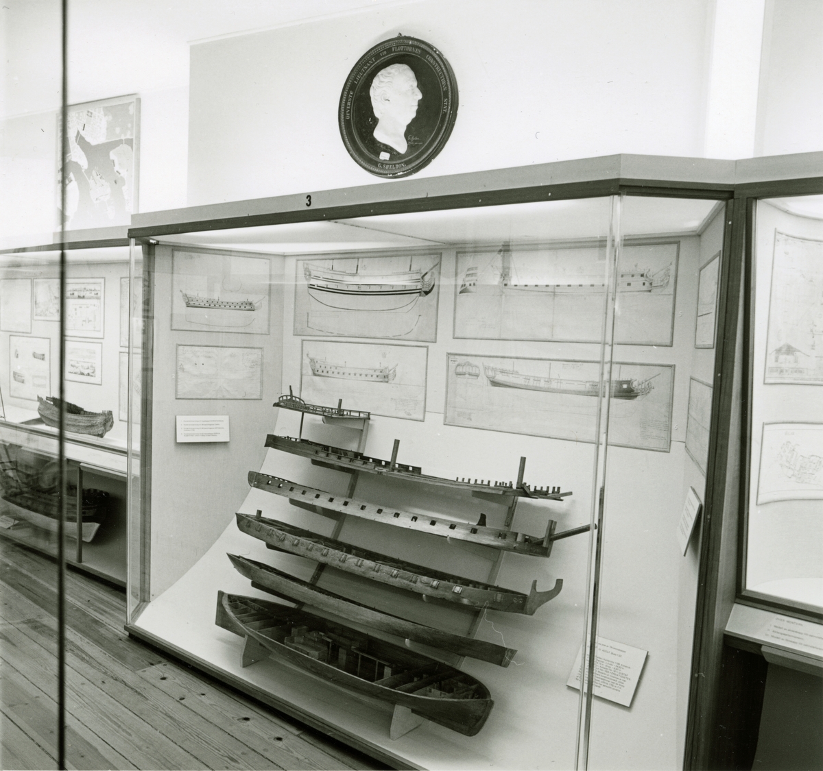 Sjöhistoriska museets permanenta utställning fotograferad 1987. Sektionsmodell.