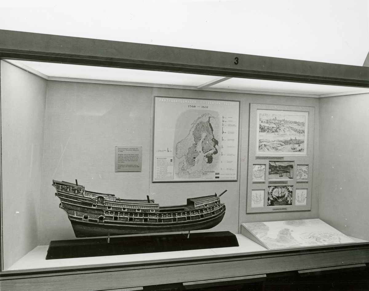 Sjöhistoriska museets permanenta utställning fotograferad 1987. Storkyrkoskeppet i monter.