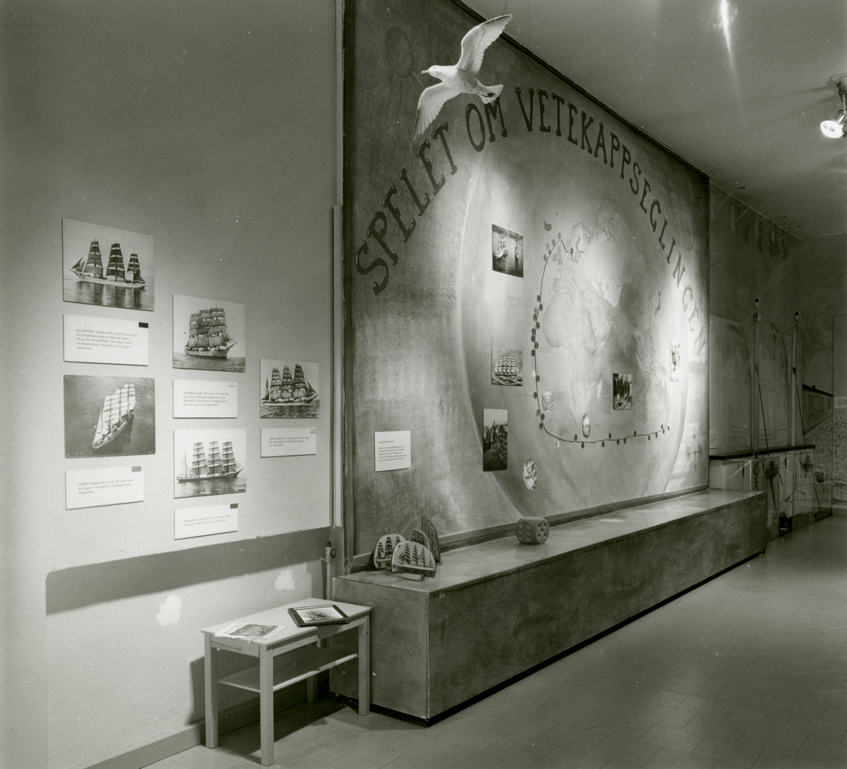 Sjöhistoriska museets permanenta utställning fotograferad 1987. "Spelet om vetekappseglingen."