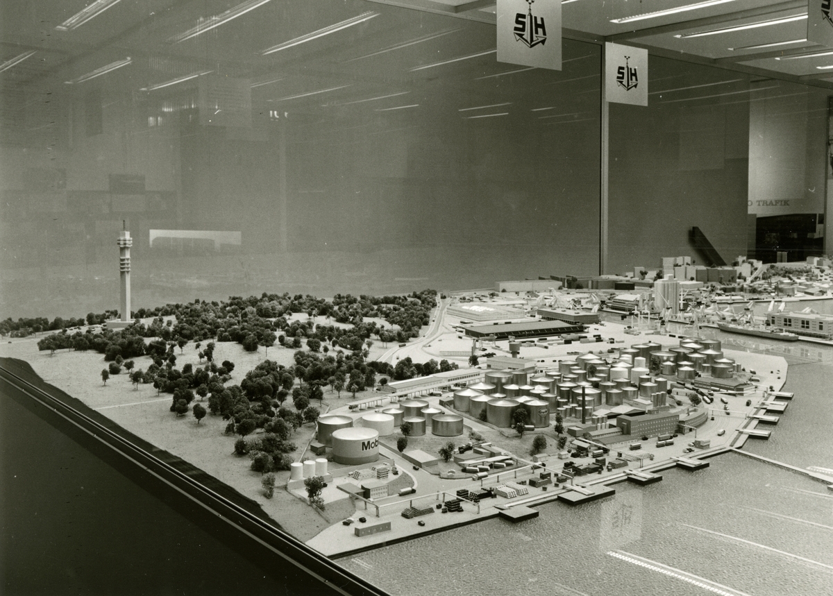 Sjöhistoriska museets permanenta utställning fotograferad 1987. Modell av Frihamnen, Stockholm.
