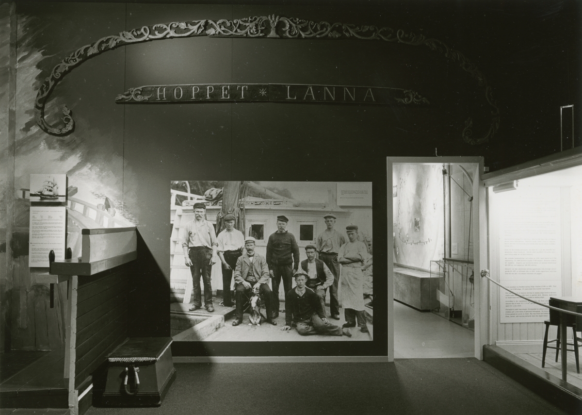 Sjöhistoriska museets permanenta utställning fotograferad 1987. Utställning om skonerten HOPPET.