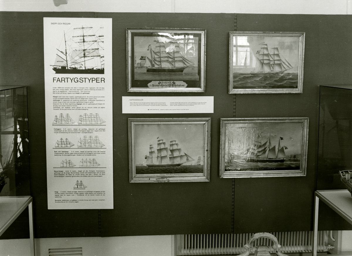 Sjöhistoriska museets permanenta utställning fotograferad 1987. Fartygstyper på skeppsporträtt.