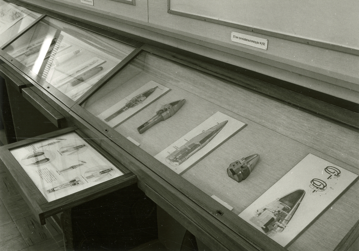 Den permanenta utställningen fotograferad 1987. Torndubbelautomatpjäs.