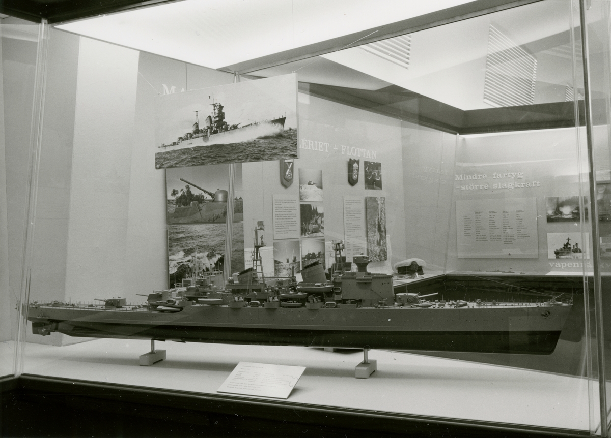 Den permanenta utställningen fotograferad 1987. Fartygsmodell av kryssaren GÖTA LEJON.
