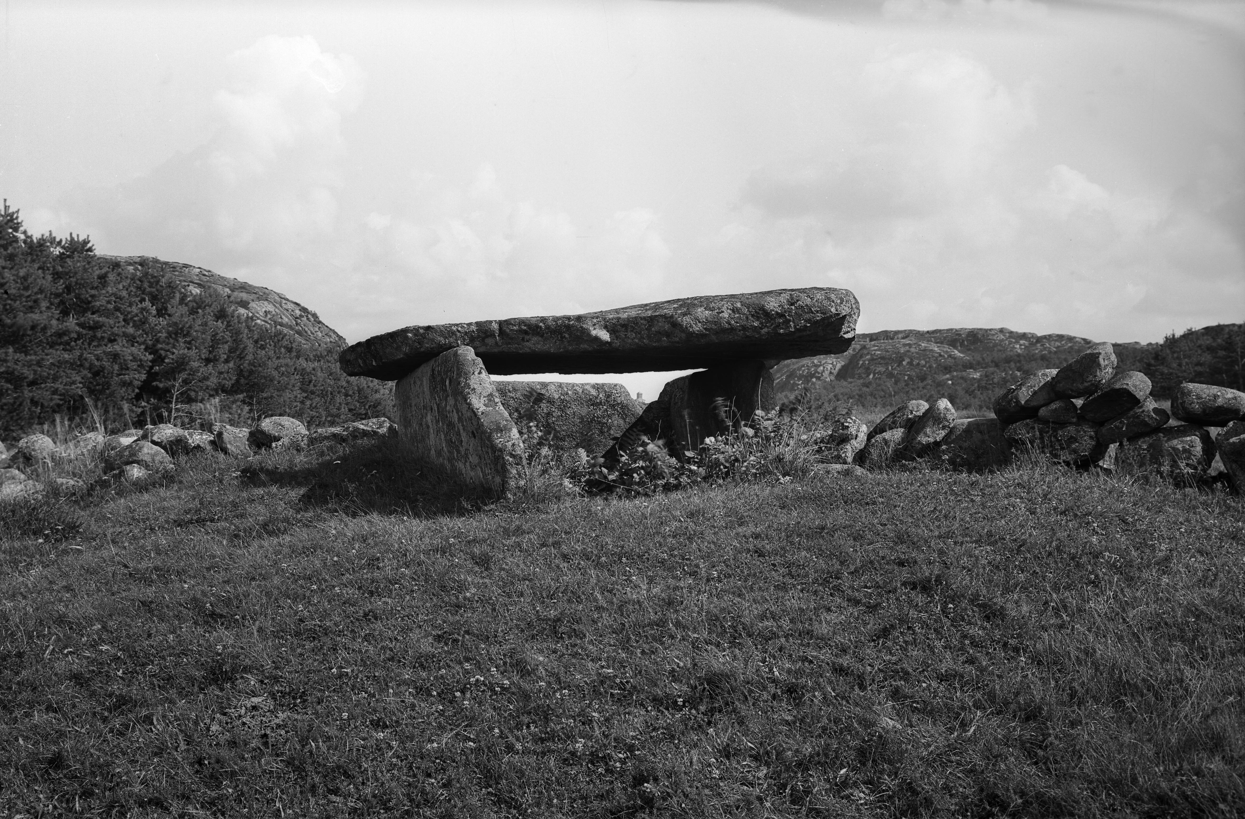 Dös, i omgivande rund stensättning. Kammaren, som av de stenar som står kvar att döma, har varit osedvanligt stor, ca 5 m diam,markeras av 6-7 numera synliga stenar. Anläggningen domineras av den kvarstående takhällen, som till formen är närmast rund. Runt anläggningen ligger 6 tämligen flata stenar, som sannolikt bildat en yttre ram kring kammaren.