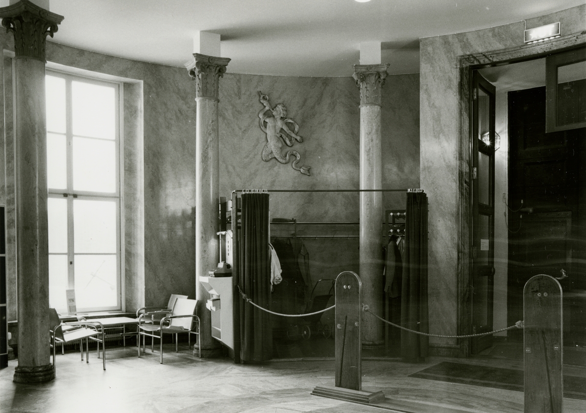 Den permanenta utställningen fotograferad 1987. Museets entré med plats för ytterkläder.