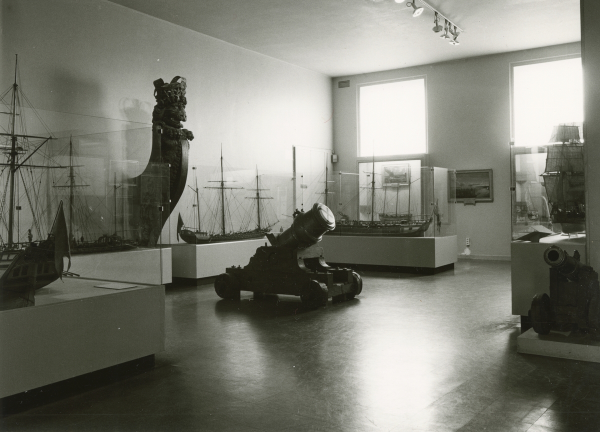 Den permanenta utställningen fotograferad 1987. Modeller av skärgårdsfregatter, mörsare m m.