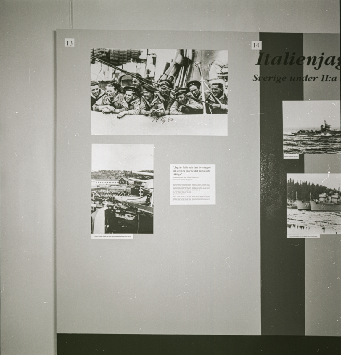 Utställningen "Italienjagarna". "Sverige under II:a värdlskriget". Fotografier på skärm.