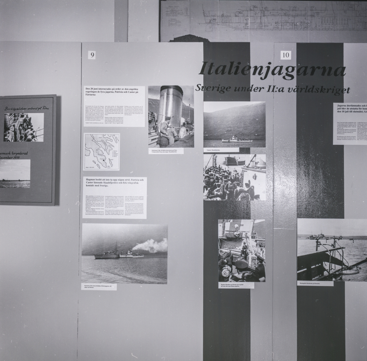 Utställningen "Italienjagarna". "Sverige under II:a värdlskriget". Fotografier på skärm.