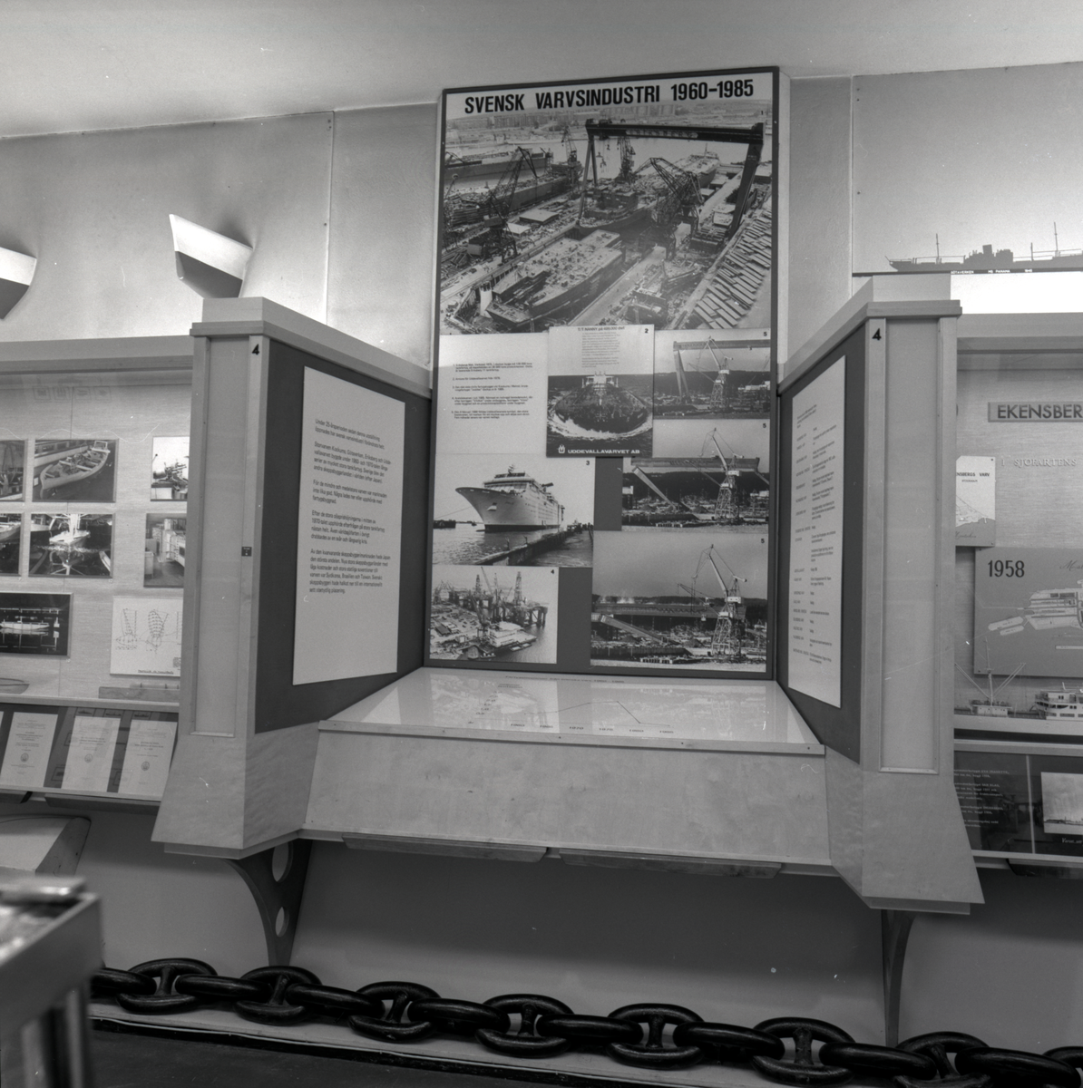 Utställning. Monter som visar Svensk Varvsindustri 1960-1985.