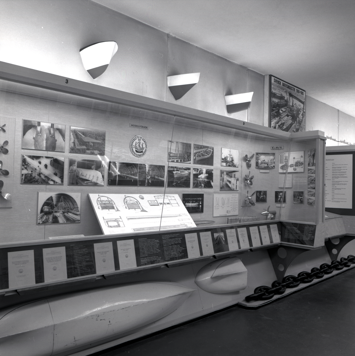 Utställning. Monter som visar modellförsök inom skeppsversamhet.