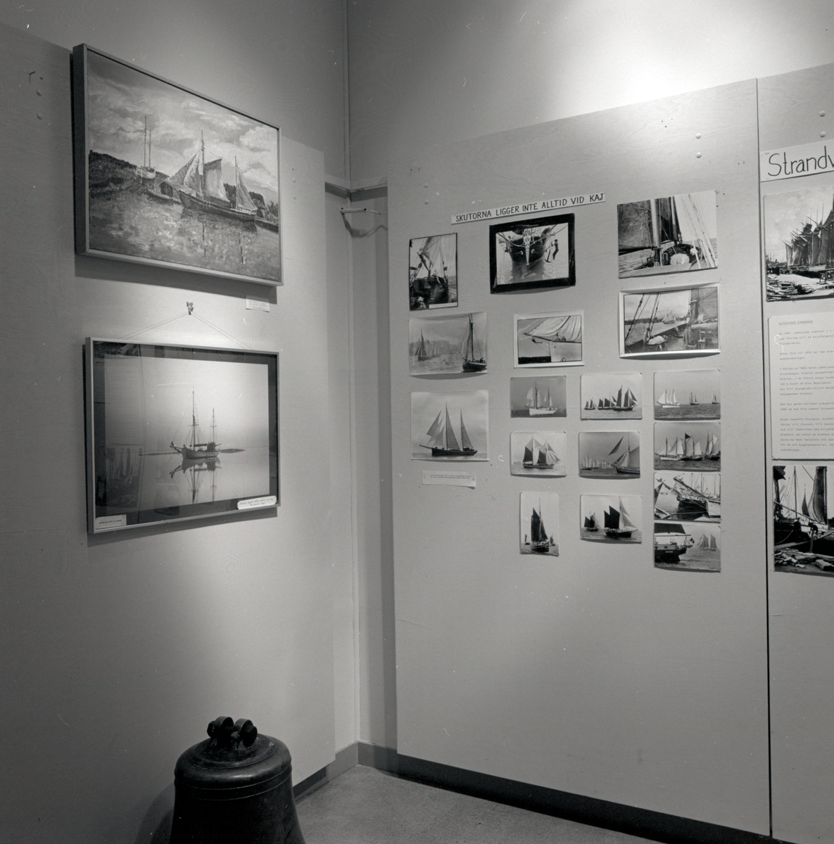 Utställingen Skutor längs Standvägen. Två tavlor samt fleratlet fotografier föreställande skutor.