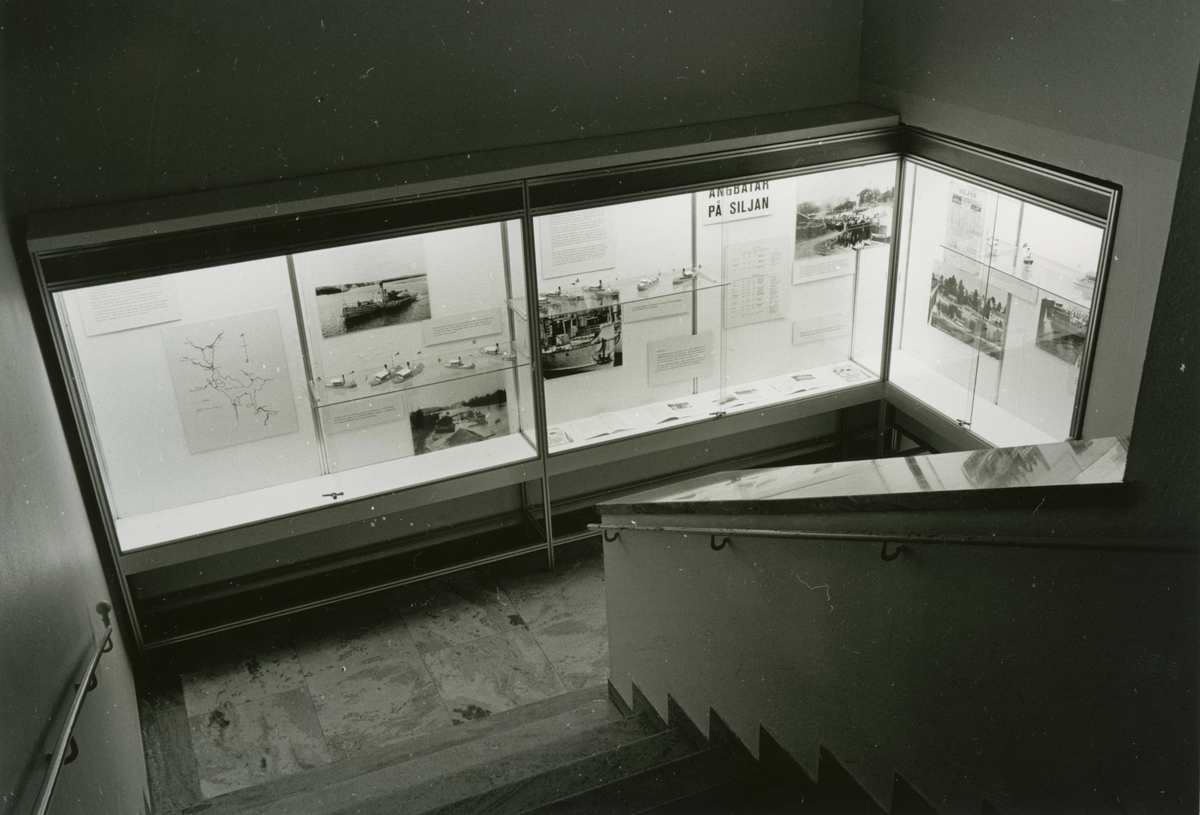 Utställningen Ångbåtar på Siljan i trappmonter. Överblicksbild.