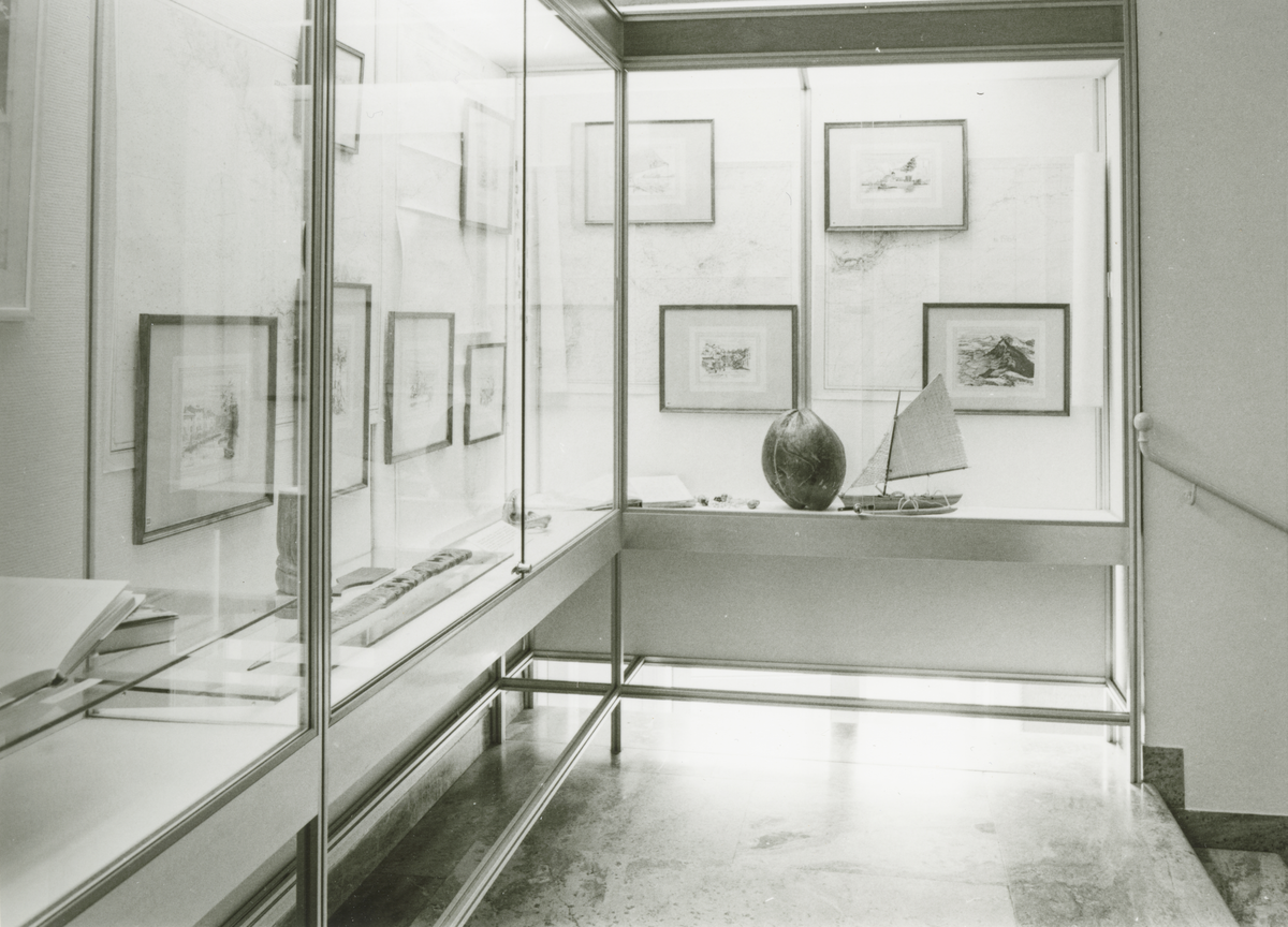Utställning i trappmomter med teckningar av Gunnar Dahlgren.