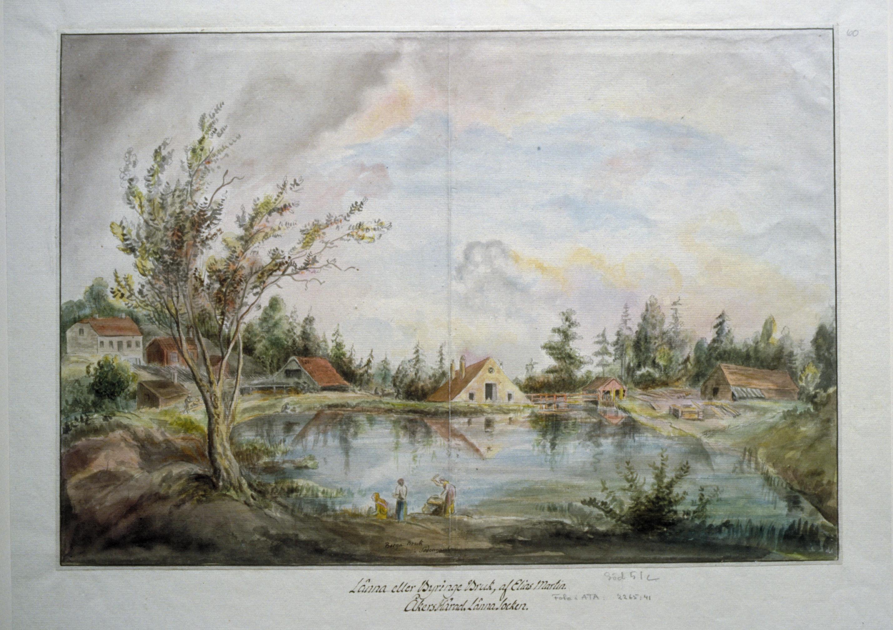Länna eller Byringe bruk. Akvarell av Elias Martin från 1790-talet